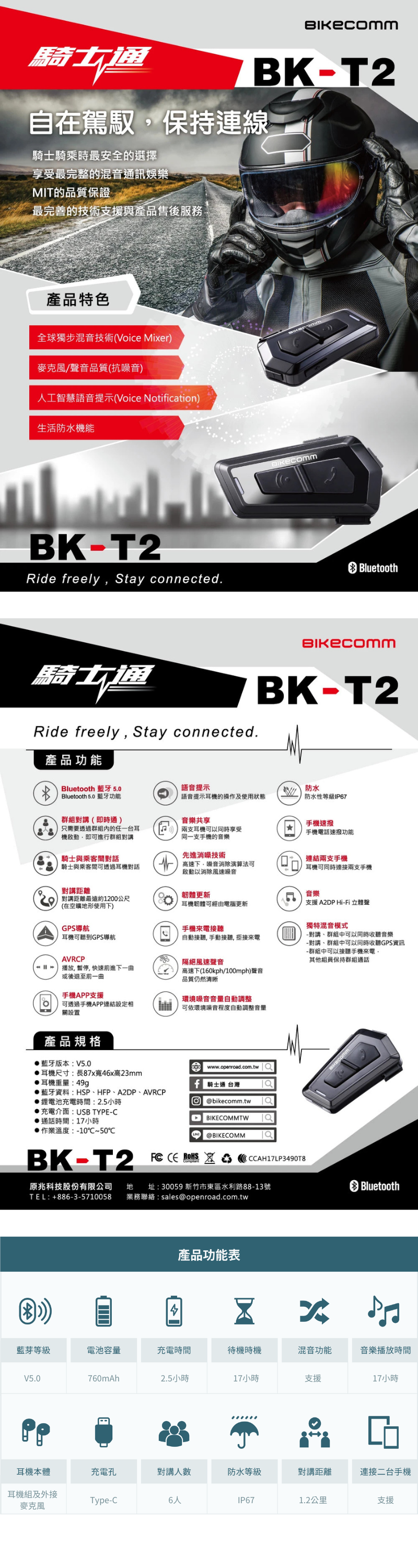 【BIKECOMM】騎士通 BK-T2 安全帽藍芽耳機