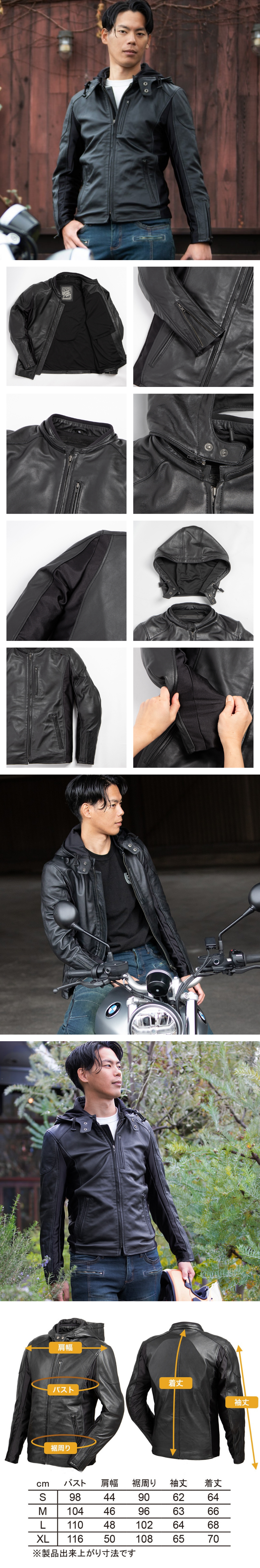 【DEGNER】24SJ-3 Hooded Leather Jacket 休閒連帽皮革防摔衣