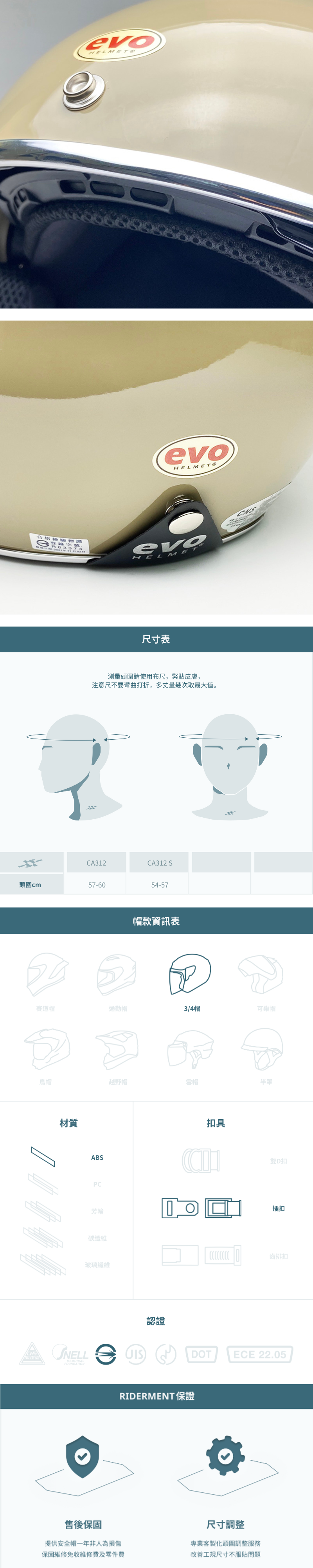 【EVO】CA312 復古騎士帽/復古3/4罩安全帽