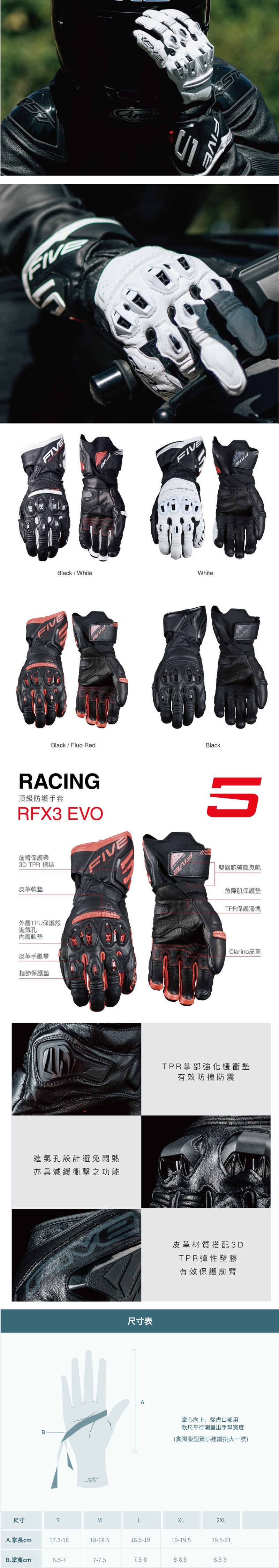 •2024全新上市的RFX3 EVO,與先前的RFX3相比整體大改,除了外型,其他功能性再次往上提升一截,絕對是其他頂規手套無法企及的高度!!!