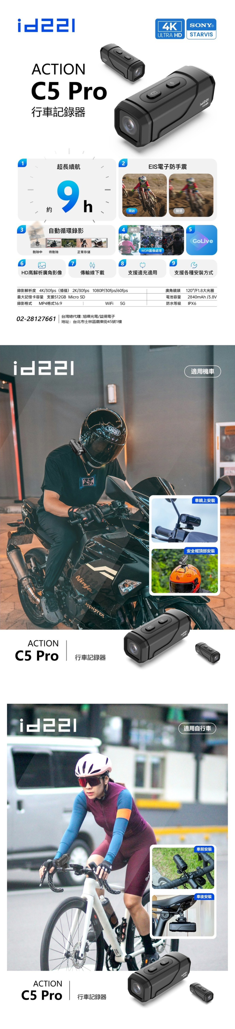 【id221】 ACTION C5 Pro 安全帽 防震 行車紀錄器 內含64g記憶卡