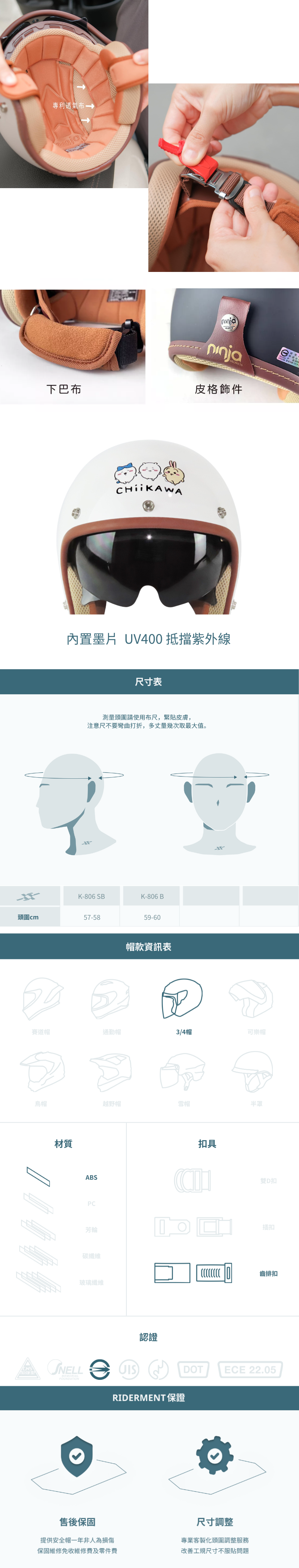 【KK】K-806 GE-3 吉伊卡哇-兔兔 烏薩奇 復古騎士帽/復古3/4罩安全帽