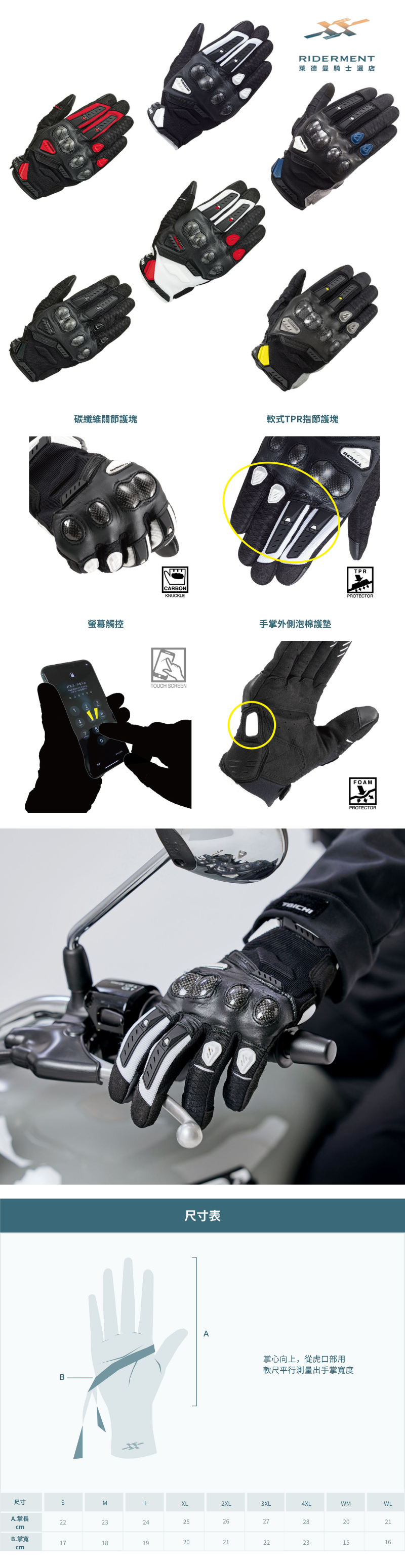【RS-TAICHI】RST444 VELOCITY MESH GLOVES 夏季短版防摔手套/可觸控/碳纖維護具