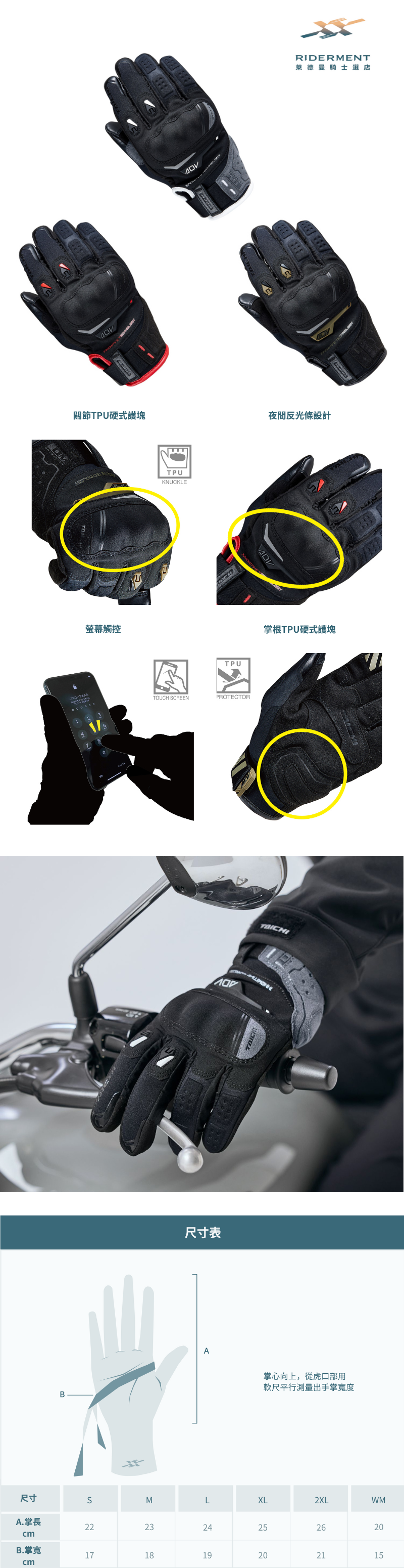 ・手背關節以及手掌處使用硬質 TPU 材質做保護