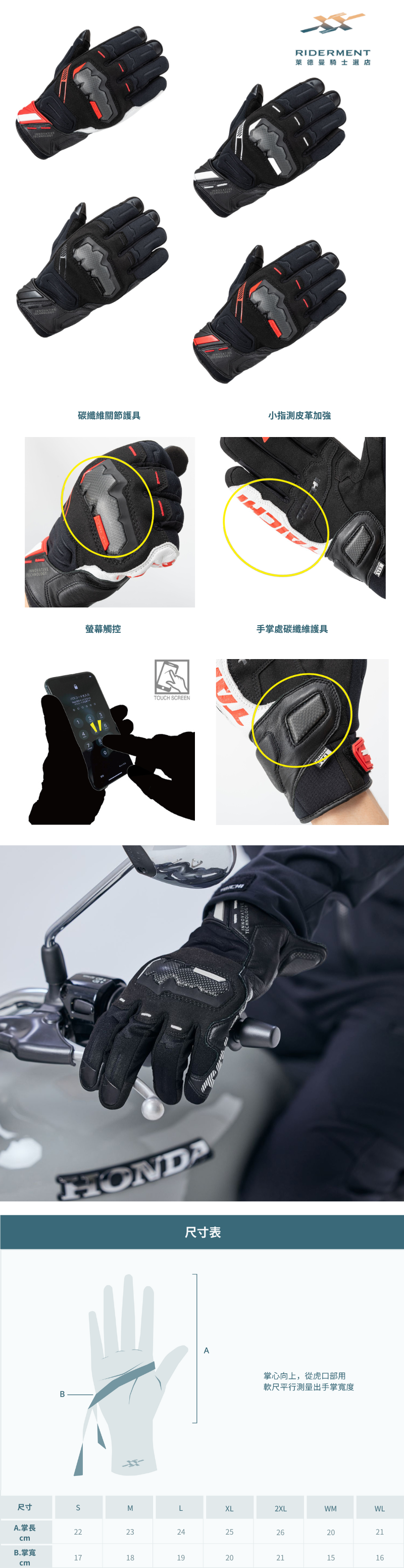 ・手背關節以及手掌處使用碳纖維護塊做保護