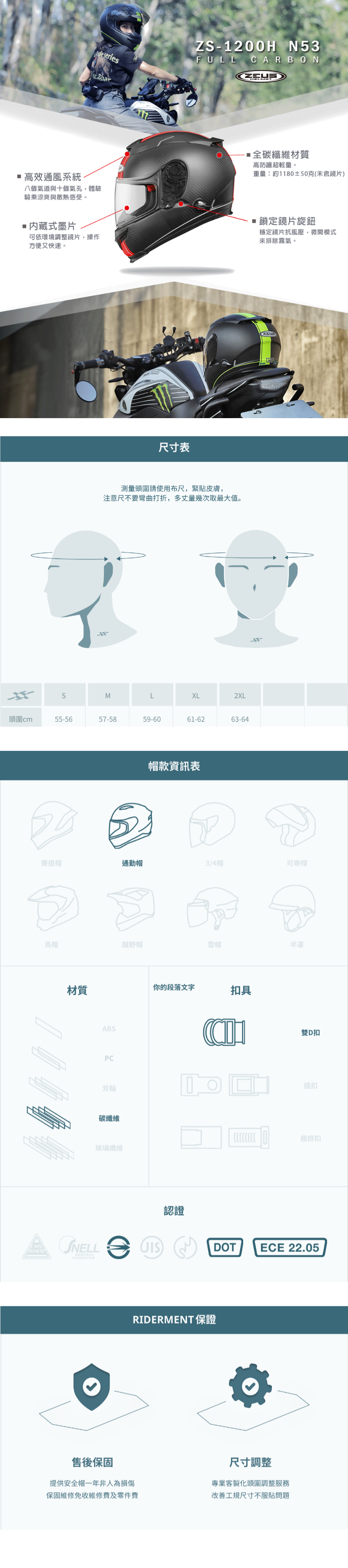 ・釦具:配置世界公認最安全雙D釦,讓騎士更能安心駕馭。
