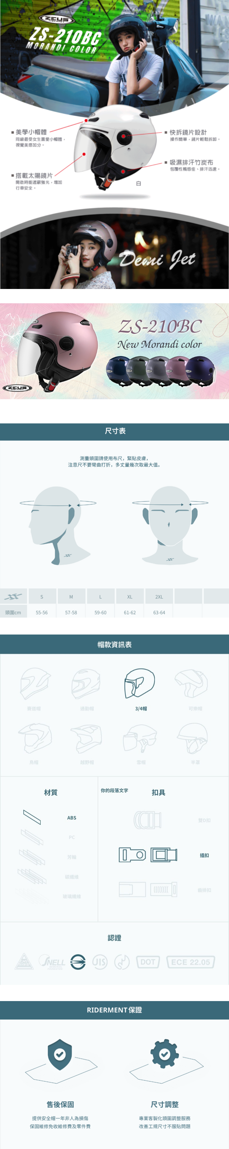 【ZEUS】ZS-210BC 素色 3/4罩安全帽/通勤3/4罩安全帽