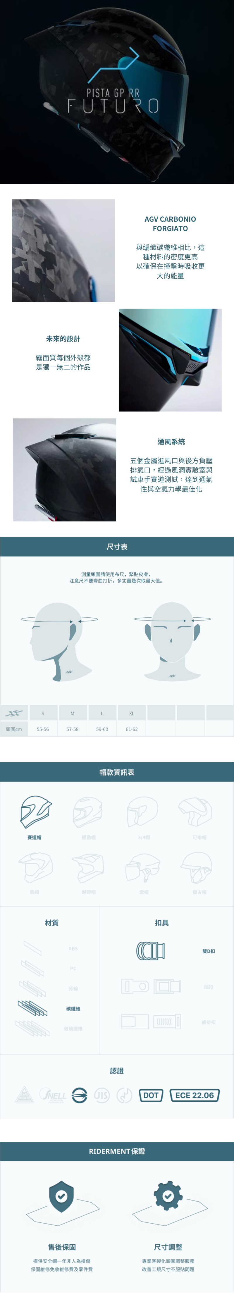 帽殼材質:4種帽殼尺寸,5片分離式EPS,鎖骨安全設計,100%碳纖維