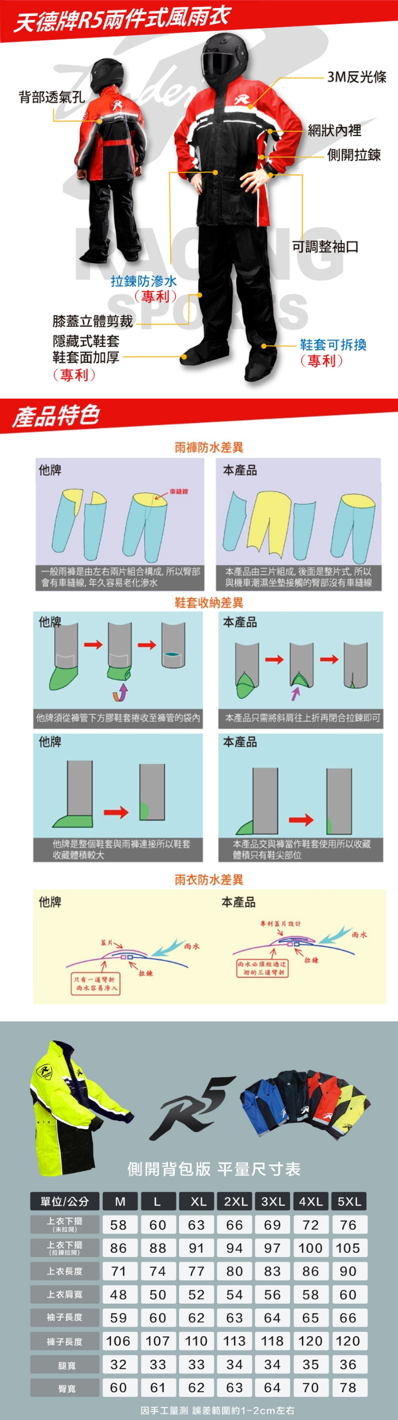 【天德牌】R5 側開式背包版風雨衣 兩件式雨衣/機車用雨衣