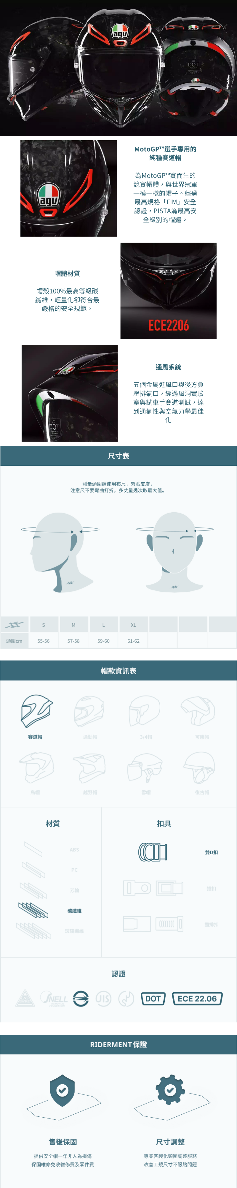安全規格:ECE 2205 (歐盟安規)、FIM認證 (賽車協會頂級安規認證)